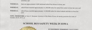 Iowa Governor Declares October 20-34 “School Bus Safety Week In Iowa”